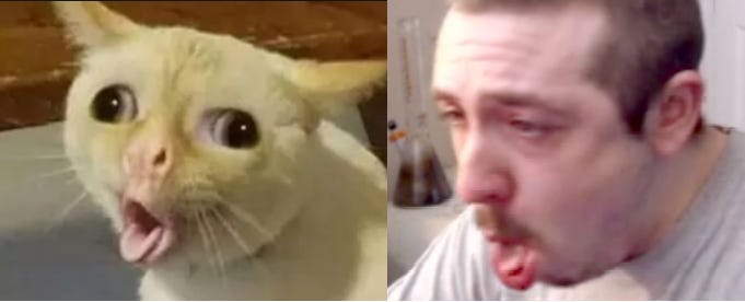This got a lot worse in 2022 when he moved from Runescape’s pseudo-gambling into real gambling on Stake.us and BCGame, two online casinos where he streams playing the slots and coinflips. A compulsive gambler, he simply cannot stop gambling – streaming until he runs out of money, unless he wins it big, logs off, and then gambles it all away anyway. Once he runs out, he asks for money from his viewers, talking about how horrible his life is and threatening suicide. He’s down in the dumps, sodapressed, and in pain until he gets money to gamba it all away again. Or use it on crack, which makes him a paranoid madman.